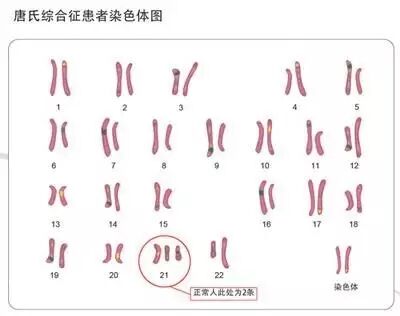 唐氏综合征(21-三体综合征),又称先天愚型或Down综合征,是由于多了一条21号染色体导致的。唐氏综合征目前尚无法治愈,患儿会严重智力低下,生活不能自理,一辈子要别人照顾。
