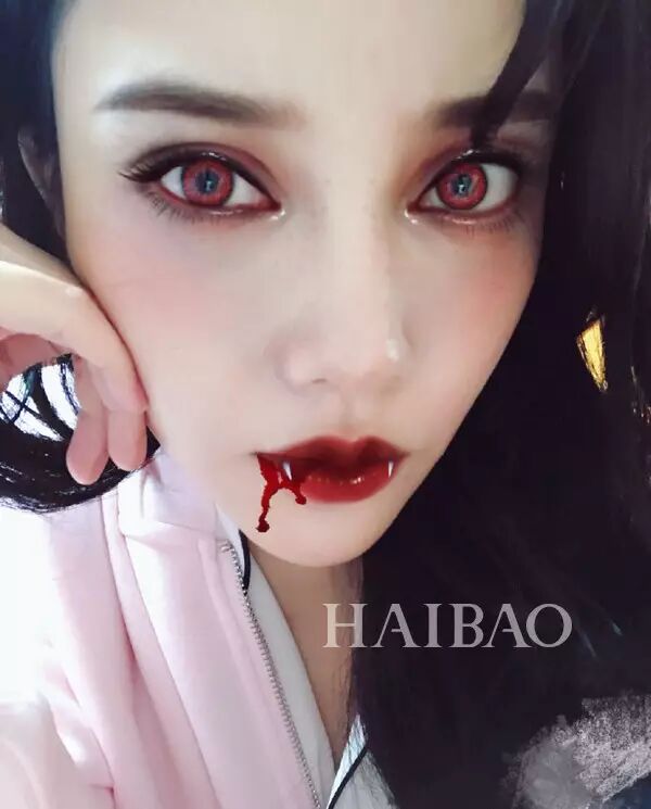 就算是红色美瞳,搭配血色妆容也多了一份妖艳出来,不过还是万圣节再尝试吧!
