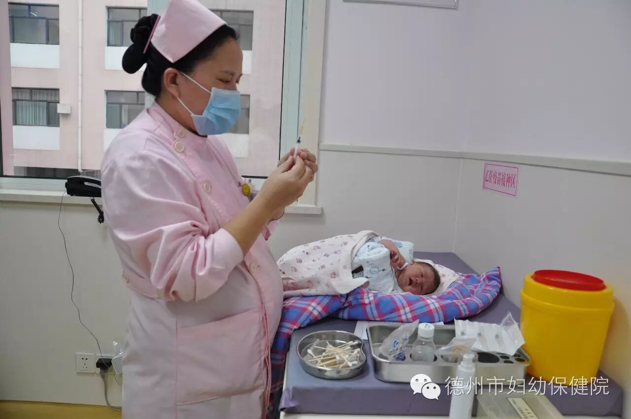 产科接种室的郭存清距离预产期还不到十天了,依然忙着为每一位宝宝进行疫苗接种。