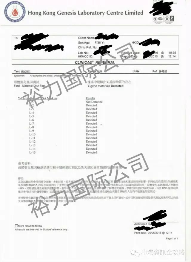 4. 在专业国际水平的香港血液化验所化验并出具权威胎儿性别鉴定报告。