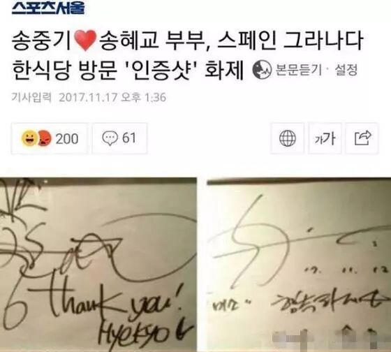 双宋曾在12日前往当地一家韩式餐厅就餐,并留下签名。