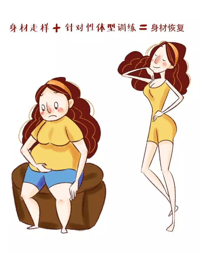 可以通过运动、断乳后适当节食来减少部分脂肪组织。另外,少坐,参加有氧健身或瑜伽等改善身体柔韧度的锻炼,可以使体型有所恢复。很多女性回归社会工作后,体重会自然逐渐下降。所以,有针对性的体型训练结合正常的社会生活,对孕后的身材恢复比较有帮助。
