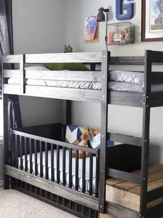 为了节省空间,更多业主们会采用上下式。交错式其实也是很不错的选择哦,空间感极强,等他们长成大宝,还可以睡前随时聊聊天。