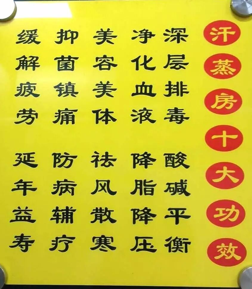 汗蒸房——产妇在满月时要进行发汗,这是有科学依据的,因为女人经历了分娩这一紧张、痛苦、消耗体力的过程,筋骨表里大开,体内正气不足,元气尚未恢复,身体抵抗力下降,而且产妇在整个月子活动量很小,大多数人不敢洗头、洗澡,使一些新陈代谢物附在皮肤表面。