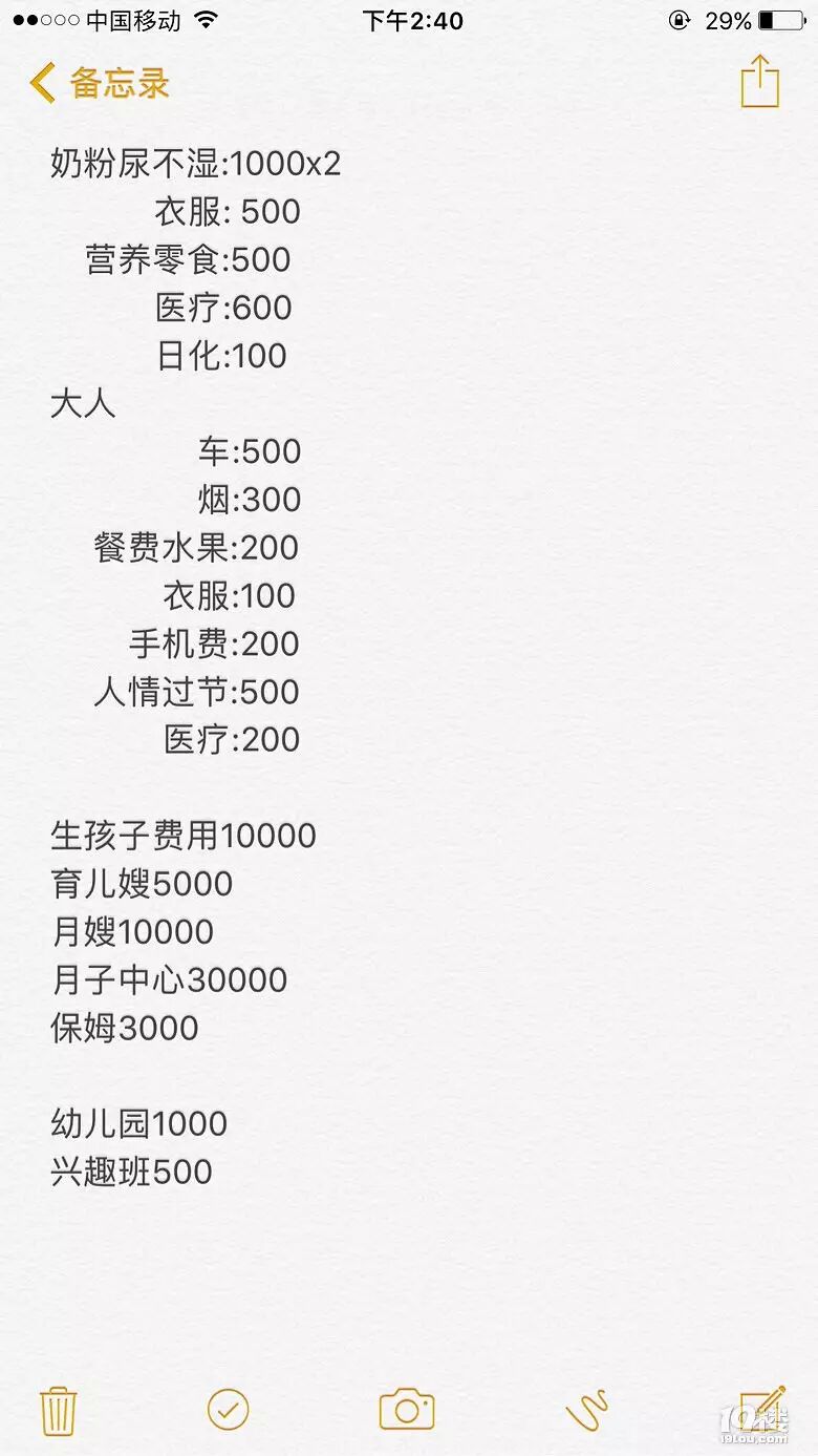 请大家看一下我的二胎成本是不是多了?这是一个月的预算。