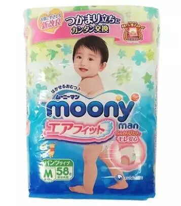 号称是在日本卖得最好的尿不湿。它的设计非常贴心,除了腰上有可爱的维尼熊的图案外,还新增加了透气表层,更有趣的是在尿片的后部还设计了一个大便分离槽,目的是尽量不让便便刺激宝宝娇嫩皮肤,有效防止红屁股。妈咪宝贝比较薄,锁水功能也较强。