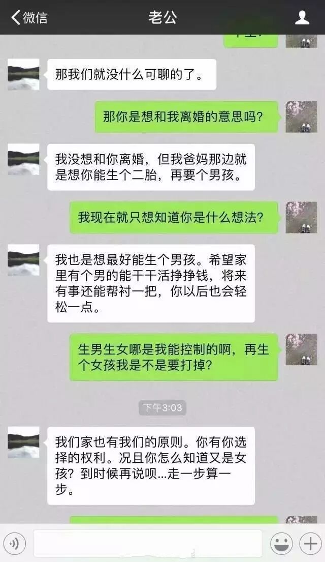前几天,一对夫妻“要么生二胎要么离婚”的聊天记录火爆朋友圈,这都什么年代了,居然还有人重男轻女?曾经海誓山盟说爱你的人,最后竟然把你当成生育工具?