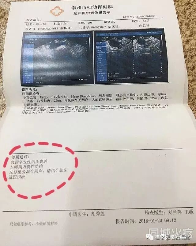查出是宫颈多发性囊肿,盆腔积液,2月3日又查出右侧