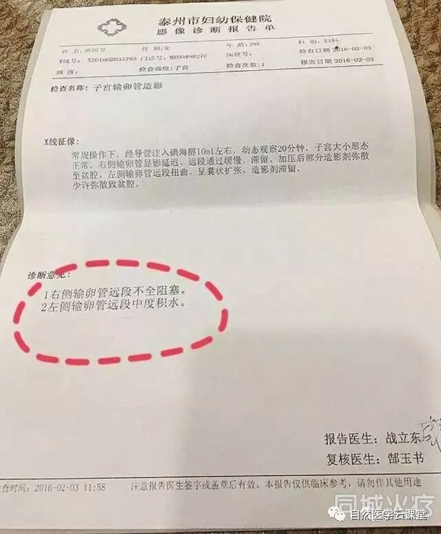 于一直不能怀孕,2016年1月20日决定去医院检查,结果