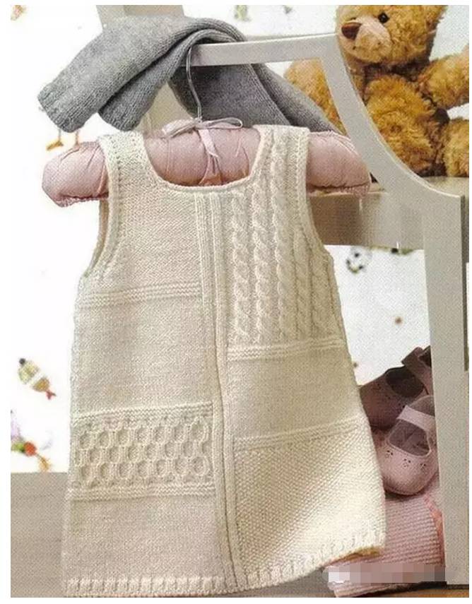 19、不同的针法组合在一件背心裙上,也非常有趣哦~