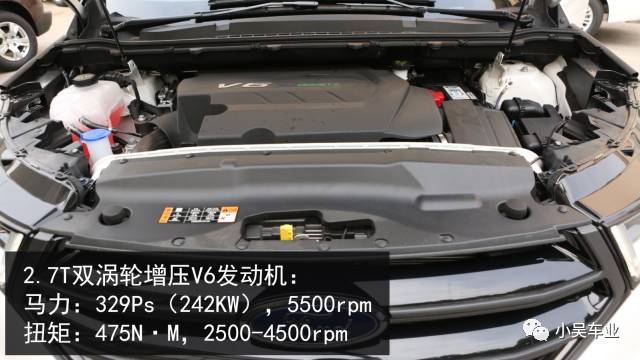 再加上两颗涡轮的加持,这台六缸机能爆发出329匹的马力和475牛米的扭矩,从数据上看挺带劲的,拉动锐界这台大块头已经绰绰有余。