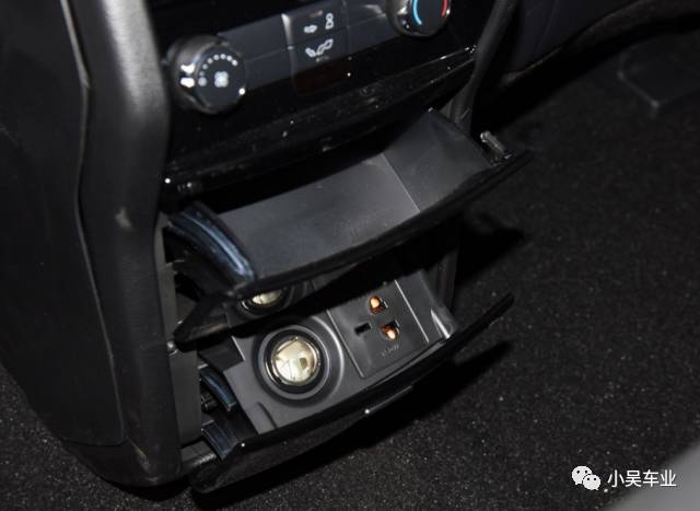 除此之外,后排还有一个下翻式的储物格和点烟器接口,220V电源,偶尔还能满足商务需求。