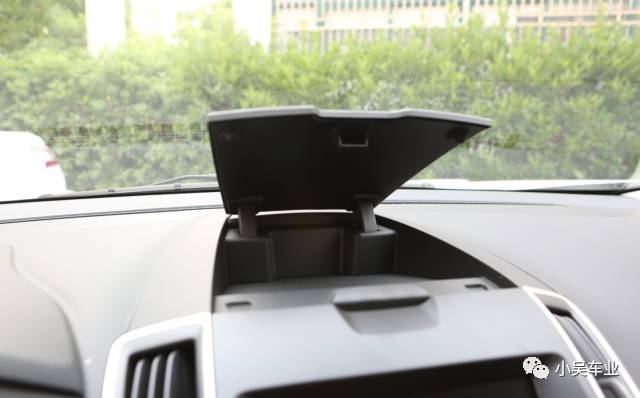 在显示屏上方还有一个“坡形”的储物格,这个地方适合放一些资料和通行卡最为合适,还配有盖子,盖上之后物品不会乱跑不见。