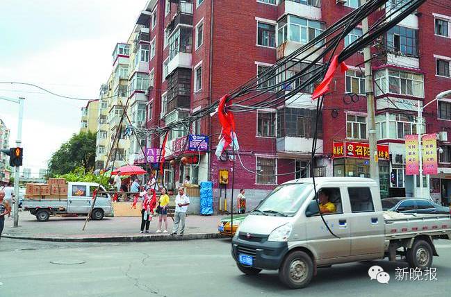 在南岗区文成街与文林街交口处,一组电缆低垂在文成街车行道上,最低离地距离仅有一米五左右。据附近居民介绍,这捆电缆是8月2日被一辆大车刮到垂下的,过去十多天问题也没有得到解决。