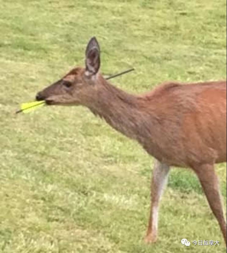 温哥华岛怀孕母鹿,被弩头射穿头部!清除箭头十分困难,小鹿嗷嗷待哺!!