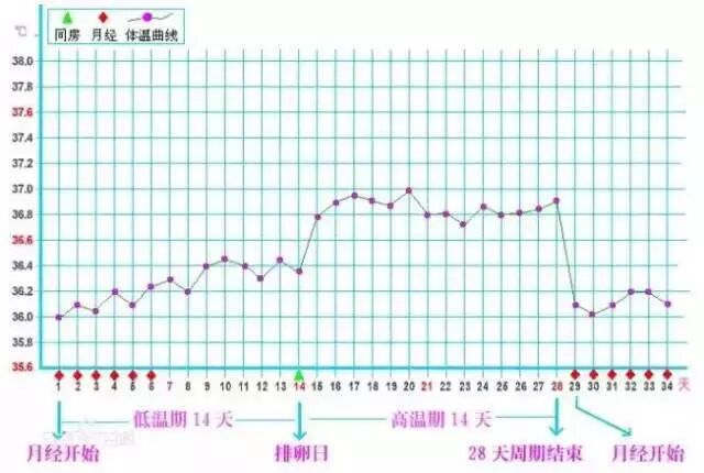 正常的体温:典型的双向型体温,在排卵后,黄体分泌孕激素,体温迅速上升0.3~0.5度,并持续至下次月经来潮前才下降;这是正常的情况。