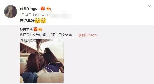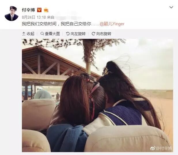 上周8月24日两人公布恋情,付辛博:我把我们交给时间,我把自己交给你,颖儿:有你真好。这首次发糖简直甜坏了吃瓜网友啊