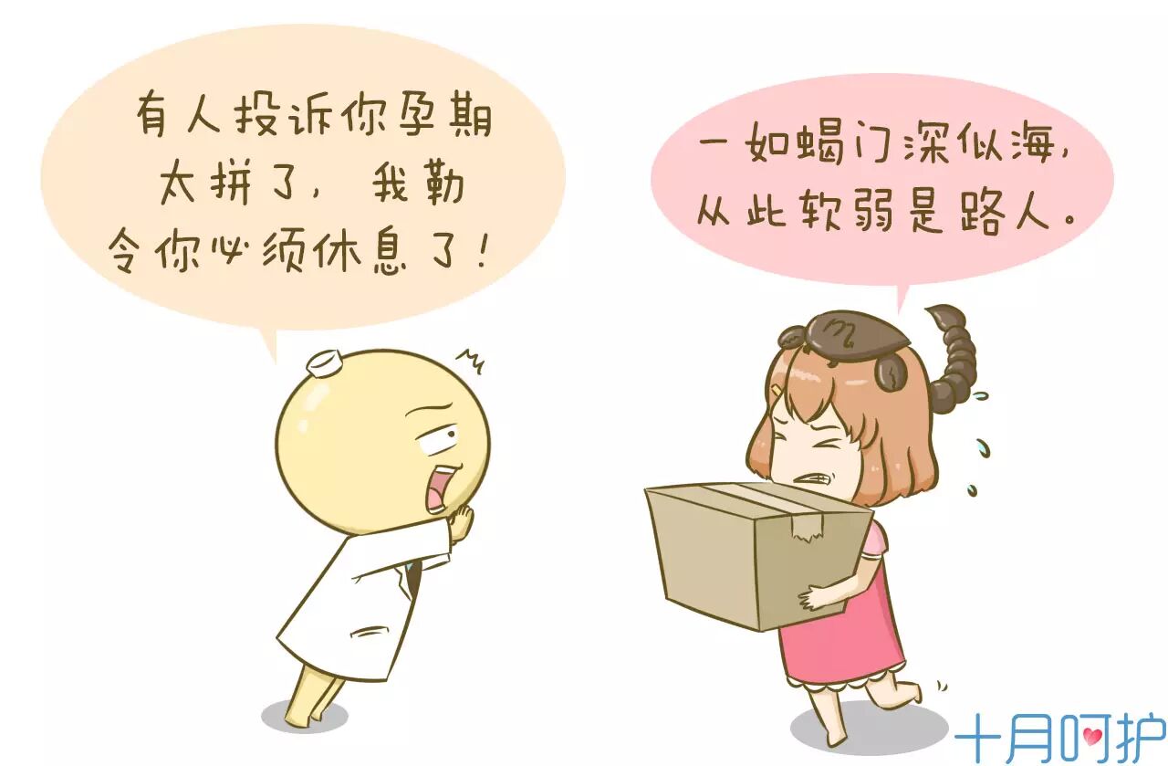 在孕期孕妈至少要保证每天睡够8个小时,避免久坐、久站,孕早期(怀孕的前三个月)的过度劳累会导致流产;孕晚期(怀孕7个月以后)过度劳累则会加重早产的风险,所以蝎蝎们应该将重心从工作转移到关注自身健康上哦。