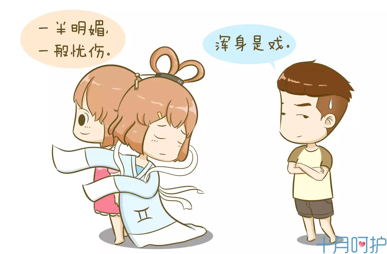 在孕妈圈里双子算是戏最多的一个星座,在产检时梨花带雨抛出一大堆问题的是她,回家抱着老公撒娇“买买买”的是她,胎教时装逼装冷静“恨不得宝宝在肚子里就崇拜为娘”的也是她们,总之,一天72变,你问她怎么了,她还会睁着无辜的眼睛说:“木事啊!”