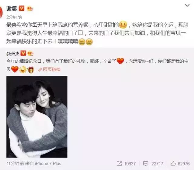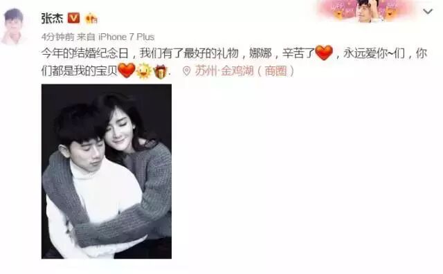 张杰谢娜夫妇在两人6周年结婚纪念日放出大惊喜——谢娜怀孕了。