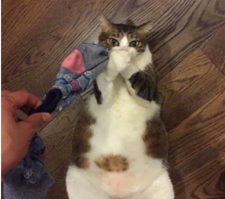 喵星人闻到铲屎官的臭袜子后做出了这个动作