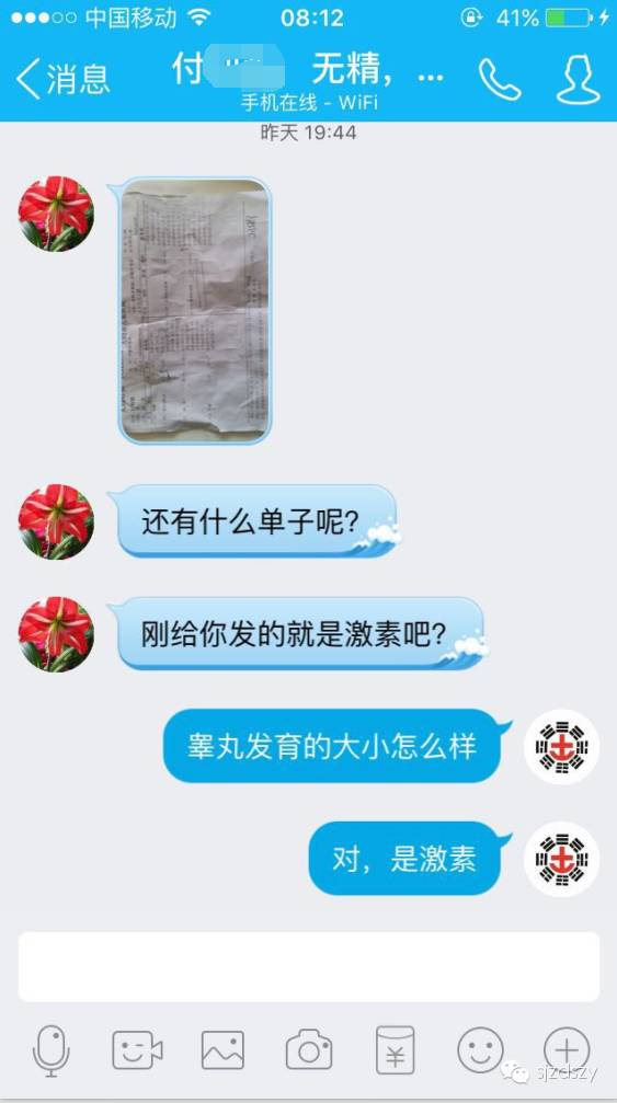 夫妻双方不同意供精试管,无奈之下,付先生的妻子在网上与本所联系,描述了身体症状,发了检查结果,发了舌像,看到付先生,胡须旺盛,双目有神,从外观看,阳气尚足,结合检查结果,确诊为非先天性无精症,属于后天失调导致,凭临床经验分析,此类的病历在本所治好怀孕的不少。详细了解病史,因职业需熬夜,工作压力大,加上饮食不节,(酗酒抽烟),性生活不节制,结合身体症状:经常腰酸,站久了腰部僵硬,耐力不足,夜间睡觉腰间出汗,腰发凉,精液外观果冻状颗粒,容易疲劳等症状,网上交流后,建议安排时间亲诊。