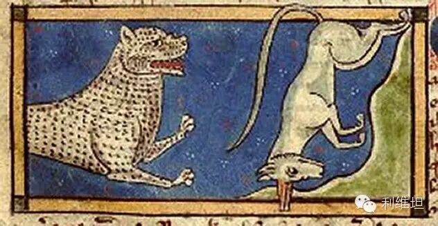 跟上图不太一样?的确。不过,这是中世纪人们对黑豹描绘最为贴近的一幅图画了。用他们的话来说,“黑豹和蔼可亲,带有不同颜色的花纹,唯一的敌人是……龙!”