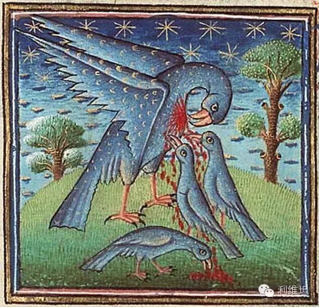 鹈鹕养育自己生的小鹈鹕,很正常对吧?不过,根据中世纪动物寓言集记载,当鹈鹕宝宝用喙啄大鹈鹕时,大鹈鹕会失去控制,重击小鹈鹕。这可不是家庭暴力狠狠削一顿那么简单,大鹈鹕下手之重足以杀死小鹈鹕。没错,大鹈鹕会杀死自己的幼崽。但这并不算大事儿,因为过几天鹈鹕妈妈会“自责地”用嘴使劲啄自己直到流血。当流出的血滴到小鹈鹕身上,小鹈鹕便可以像耶稣一样复活。