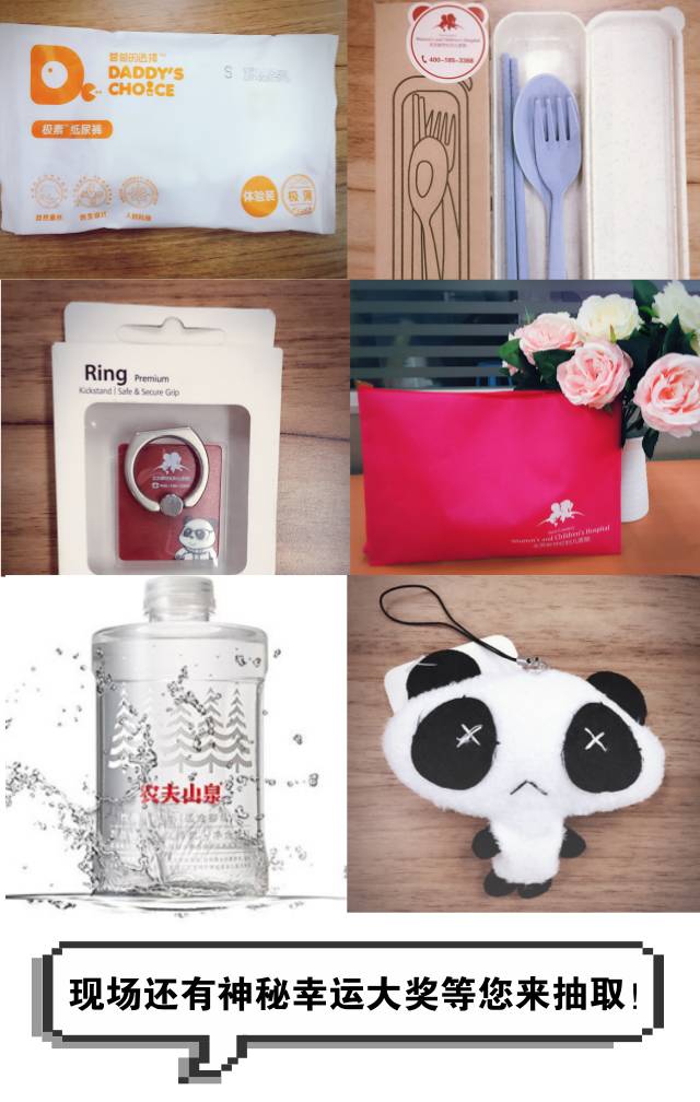 价值1888元AF Studio 新生儿摄影卡、心燕淳鲜炖燕窝、丽家宝贝大礼包、陈曦音乐胎教CD、爸爸的选择纸尿裤、儿童餐具套装、新世纪定制手机扣环、新世纪定制资料档案袋、农夫山泉母婴水、熊猫公仔挂件
