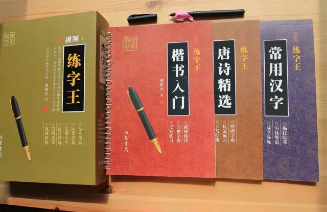 《楷书入门》凹槽字模一,《唐诗精选》凹槽字槽一本,《常用汉字》描摹字帖一本,专用褪色笔一套,专用握笔矫正器一, 同步视频二维码一套。