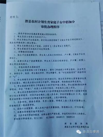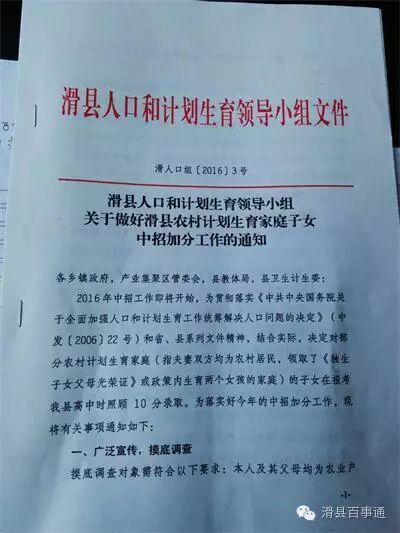 2016年中招工作即将开始,为贯彻落实《中共中央国务院关于全面加强人口和计划生育工作统筹解决人口问题的决定》(中发〔2006〕22号)和省、县系列文件精神,结合实际,决定对部分农村计划生育家庭(指夫妻双方均为农村居民,领取了《独生子女父母光荣证》或政策内生育两个女孩的家庭)的子女在报考我县高中时照顾10分录取。为落实好今年的中招加分工作,现将有关事项通知如下: