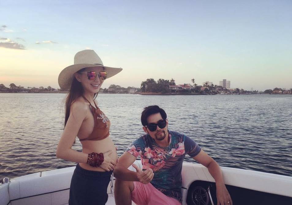 照片中也证实昆凌此次怀的是男宝宝,辣妈二胎孕肚也首次曝光,她身穿比基尼手抚孕肚,周杰伦竖起大拇指。