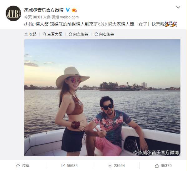 周杰伦14日凌晨、也就是情人节当天,开心宣布老婆昆凌怀孕喜讯,并晒出夫妻合照,投下超大闪光弹,“情人节,该妈咪的前世情人到来了,祝大家情人节‘女子’快乐啦!”