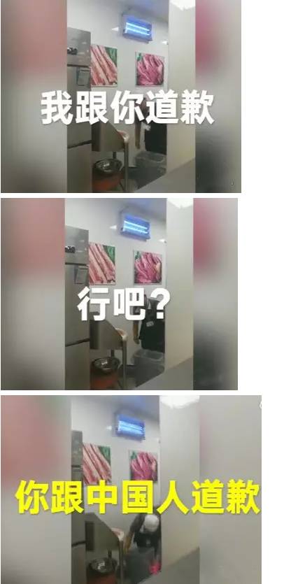 女员工向男子道歉,男子怒斥“你不用跟我道歉,你跟中国人道歉”。