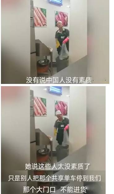 往往生活中扎心的画面更多。8月7日,武汉一超市内,一小伙拿着手机边拍边追问超市员工“中国人怎么没素质了?你生活在中国土地上,你说中国人没素质,你不是中国人啊?”超市店长表示,员工清理堵门的共享单车时发牢骚说乱停单车,太没素质了,没说中国人没素质。