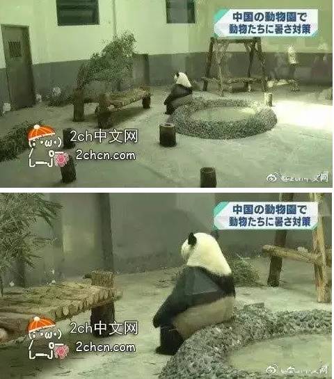 窗姐怀疑楼下这国宝是不是人扮的……在水池边休息的大熊猫完全就是澡堂大叔。