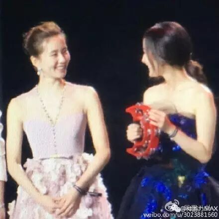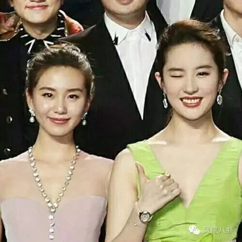双刘站在一起,刘诗诗笑靥如花,刘亦菲难得做起了鬼脸~