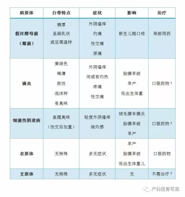 注:阴道分泌物检出病原体阳性的孕妇,不一定都有症状,无症状时是否需要治疗要根据其是否会带来不良的妊娠结局来决定。