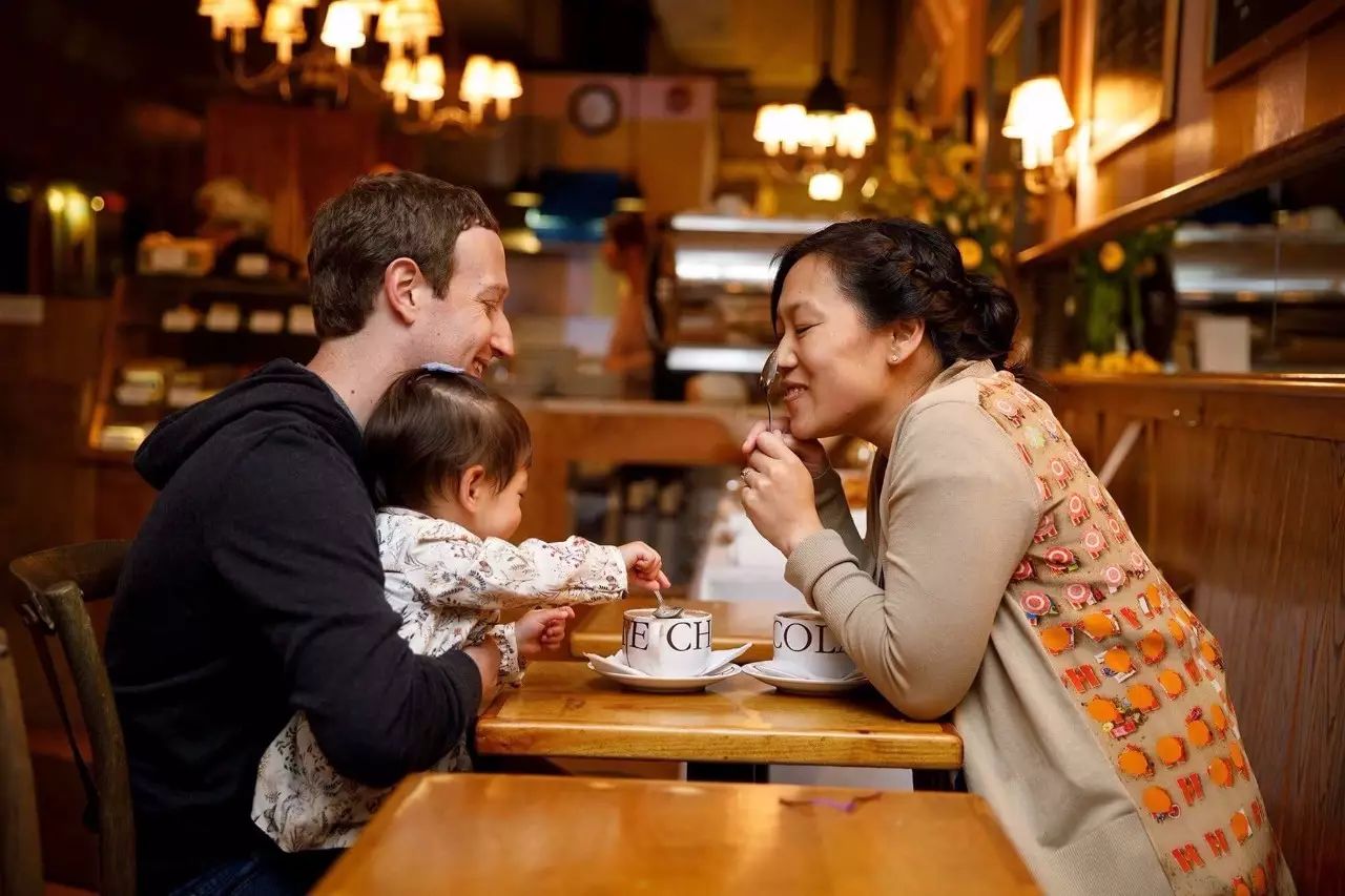扎克伯格一手护着大女儿,一手搂着太太,眼睛深情地望向怀抱小女儿的太太,满脸的喜悦和甜蜜,撒得一手好狗粮!