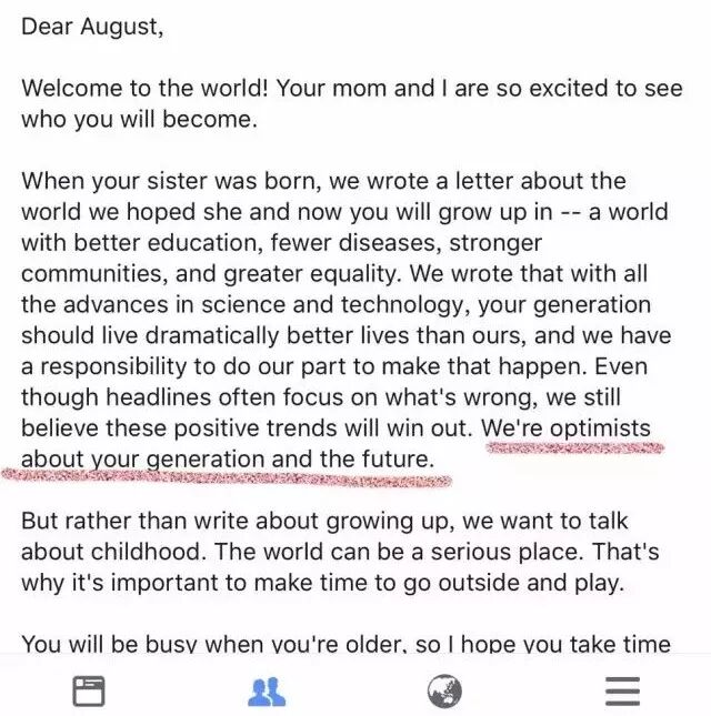 不得不说,大佬写信都一样!整个信件中不仅有 “改变世界”的雄心壮志,也充满了“希望你做一个小睡神”这样宠溺的父爱,让人读起来心都化了!