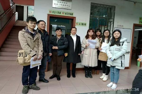 12月1日,法学院/政治与公共管理学院和文学院/新闻与传播学院的五名学生在何乃柱的指导下,前往桂林市慧灵社会服务工作中心,针对全面二孩政策下心智障碍者父母的二孩意愿进行了专项调研。