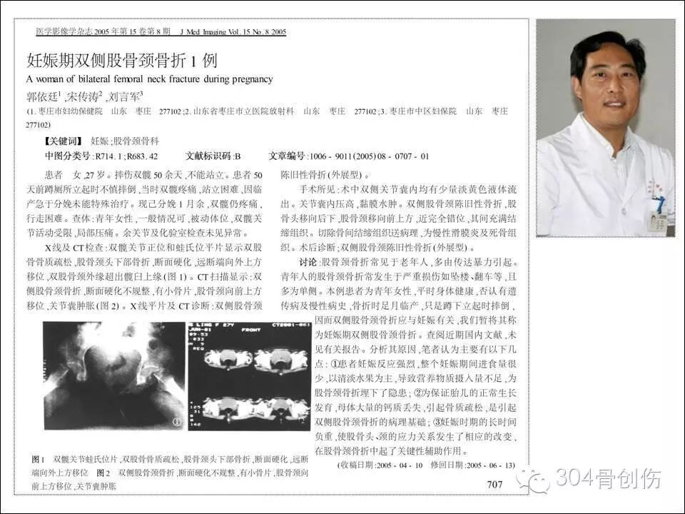 2.郭依廷,宋传涛,刘言军。妊娠期双侧股骨颈骨折1例[J].医学影像学杂志,2005,15(8) : 707.