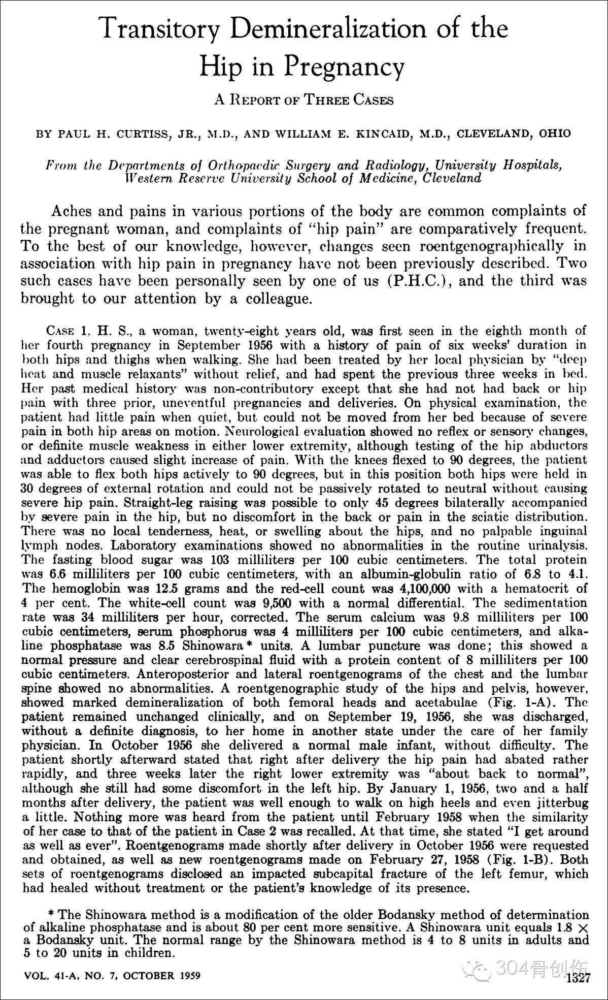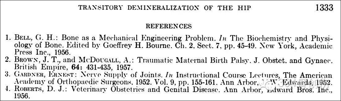 1.Curtiss PH Jr, Kincaid WE. Transitory demineralisation of the hip in pregnancy. A report of three cases. JBJS(A),1959 ; 41: 1327~1333.