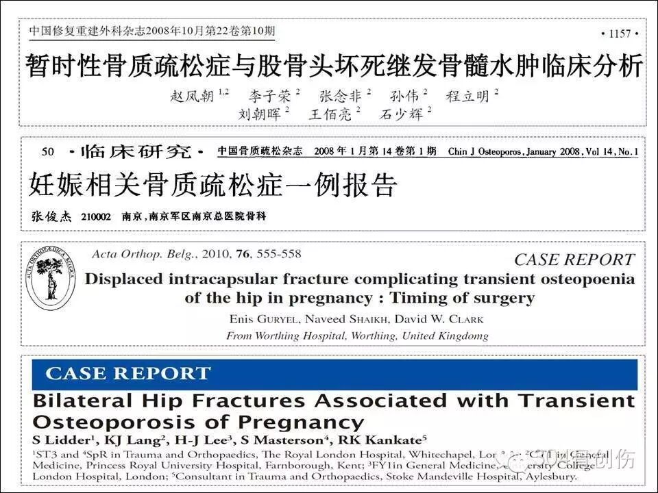 怀孕期间骨折,可能吗?对于每一个家庭来说,孕妈在哪里也就意味着全家的中心在哪里。从吃饭穿衣到外出社交,从怀孕初期到坐月子,各种禁忌各种防范预案都做好了。娇贵还不够那,咋会骨折?别急,慢慢听我说,304医院创伤骨科收治过1例妊娠期”暂时性骨质疏松症”,导致的双侧股骨颈骨折,骨折处理极为困难。现介绍给大家,以引起关注。