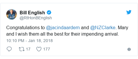 “祝贺阿德恩和盖福德。玛丽和我祝他们即将到来的新生命一切都好。”——比尔·英格利希(Bill English, 2016.12-2017.10任新西兰总理)