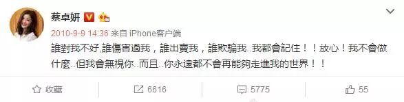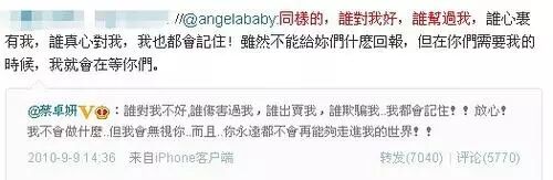 虽然baby现在已经将这条微博给删了,但是蔡卓妍依然保留着这条微博。而地下围观群众大跌眼镜:两人这是在为陈伟霆争风吃醋吗?