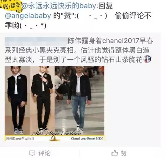 眼尖的网友发现baby居然点赞了有关于陈伟霆的一条微博。