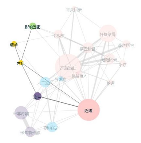 图7 中国知网检索“产后”关键词检索共现网络