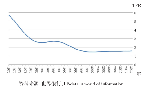图9 1970-2014年中国育龄妇女总和生育率(TFR)