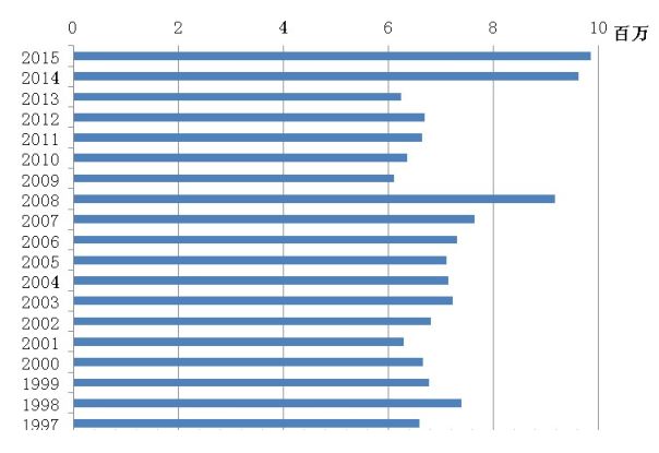 图1 1997-2015年全国人工流产数资料